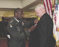"The award ceremony was held here in Headquarters, Forces Command, Fort McPherson, Georgia. Our Commanding General, four star General Larry Ellis, pinned the medal on LTC Jackson in a formal ceremony here with a band, color guard, and over one hundred people watching.